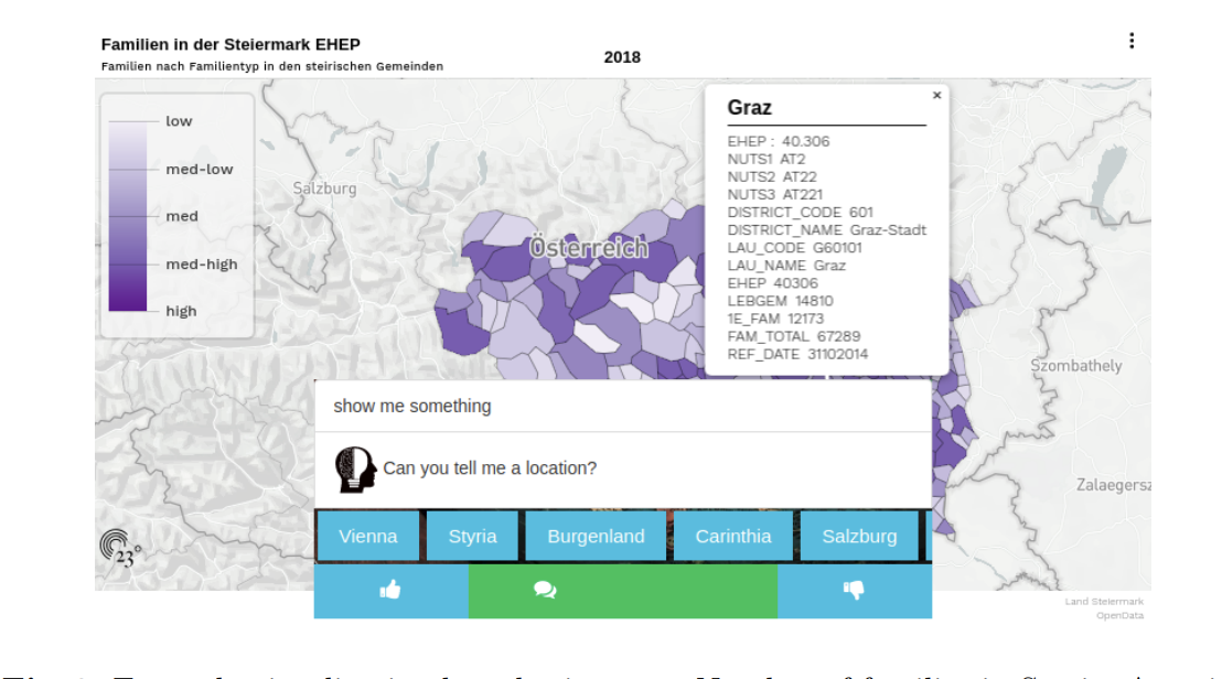 We built a search API that allows users to query datasets based on geo-entities and keywords. To make this wealth of information more accessible to non-technical users, we created a web application that automatically generates visualizations of the datasets, focusing on the nine Austrian federal states.